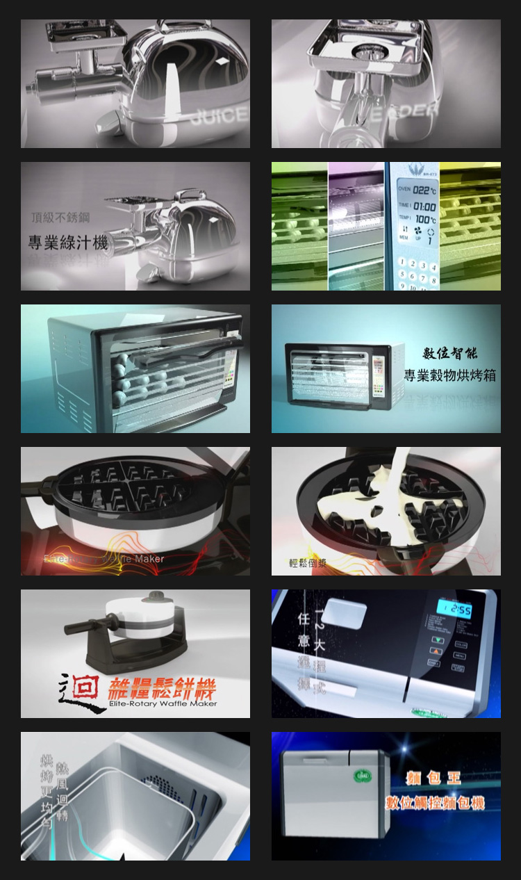 烤箱、绿汁机、面包机、发饼机外观展示三维动画